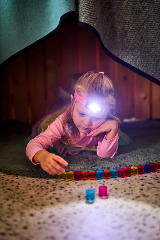 Čelovka nabízí 5 různých režimů svícení, takže si vaše děti mohou vybrat intenzitu nebo barvu světla podle situace. Přepínat můžete mezi bílým (3x) a červeným (2x) světlem. Ať už potřebují jemné světlo na čtení v posteli nebo silnější paprsek na noční procházku, čelovka je připravená.