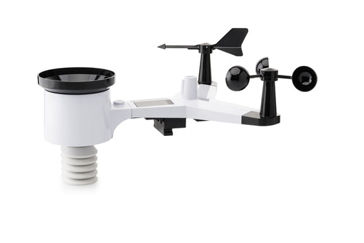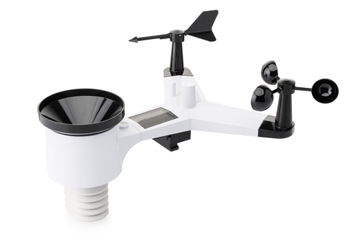 Na první pohled vás zaujme všesměrový senzor s korouhví, anemometrem a dešťovým sběračem. Meteostanice měří rychlost a směr větru, včetně nárazů, a detailně zaznamenává srážky – a to za hodinu, den, týden i celkově. Díky tomu získáte realistický obraz o aktuálních i dlouhodobějších podmínkách.